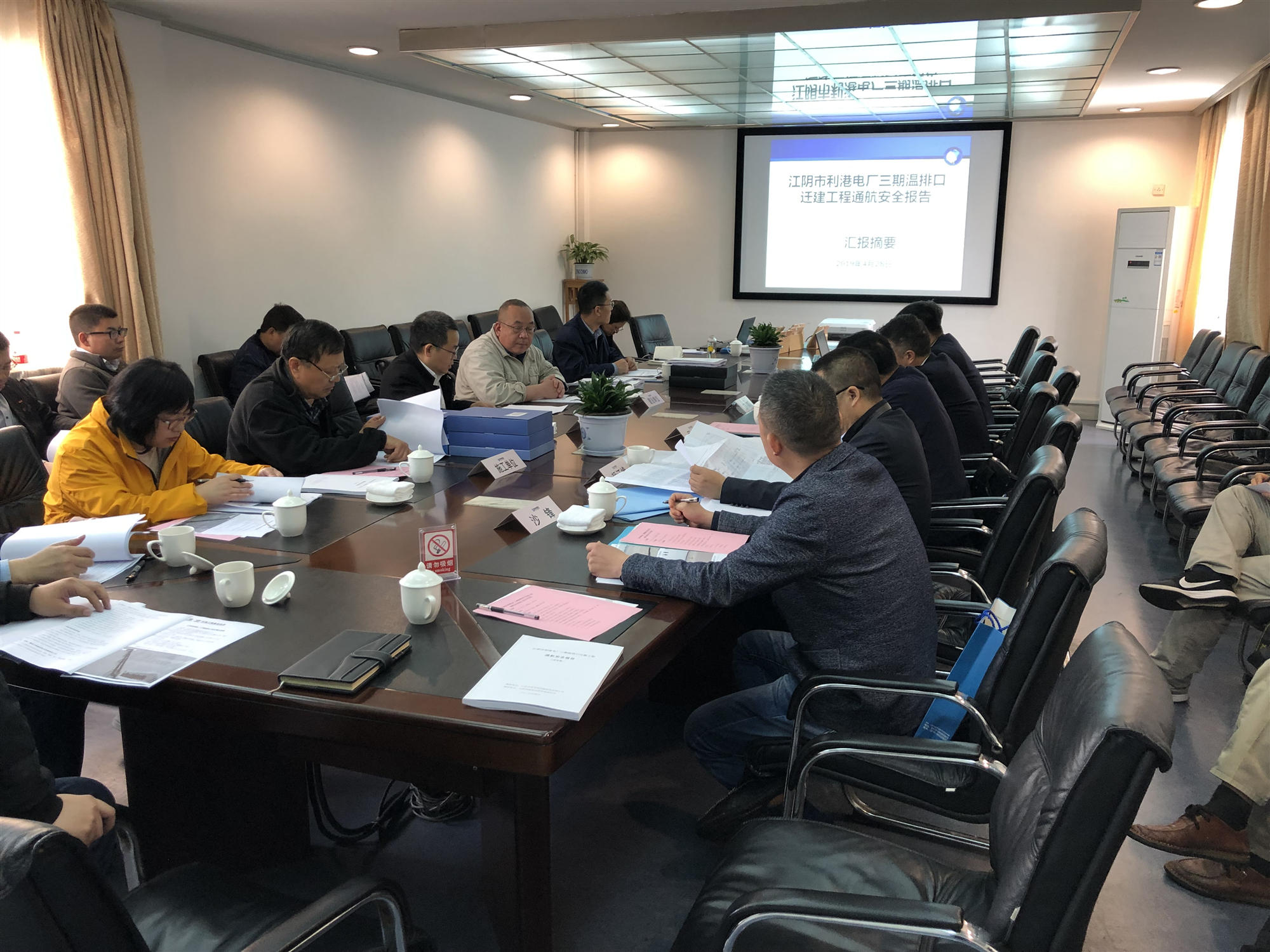 2019年4月28日,江陰海事局在江陰組織召開(kāi)了江陰市利港電廠(chǎng)三期溫排口遷建工程通航核查會(huì )議。參加會(huì )議的有江陰海事局、江陰利港發(fā)電股份有限公司(業(yè)主單位)、中設設計集團股份有限公司(設計單位)、中海工程建設總局有限公司(施工單位)、上海??乒こ套稍?xún)有限公司(監理單位)、江蘇中信安全環(huán)境科技有限公司(報告編制單位)代表以及特邀專(zhuān)家。